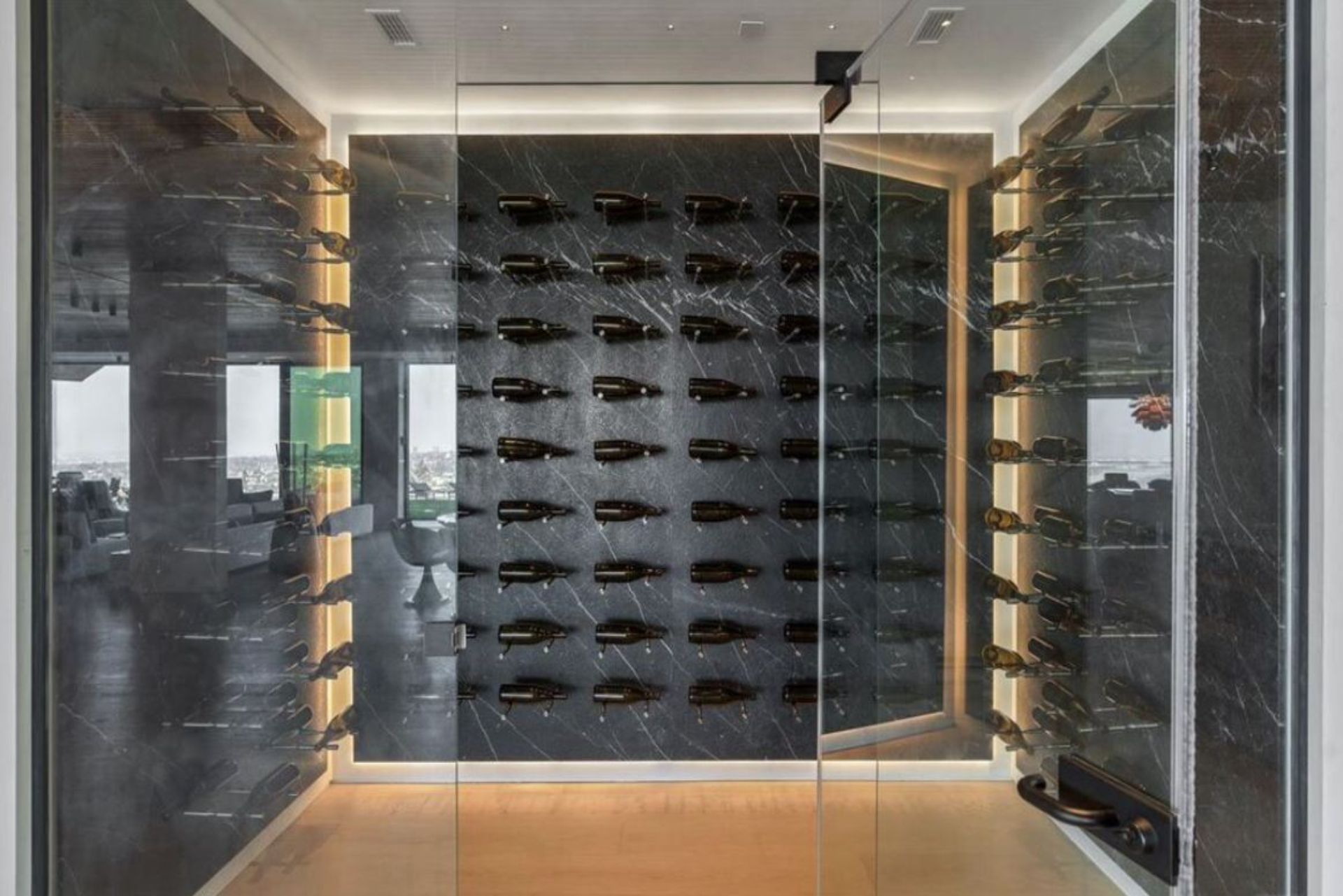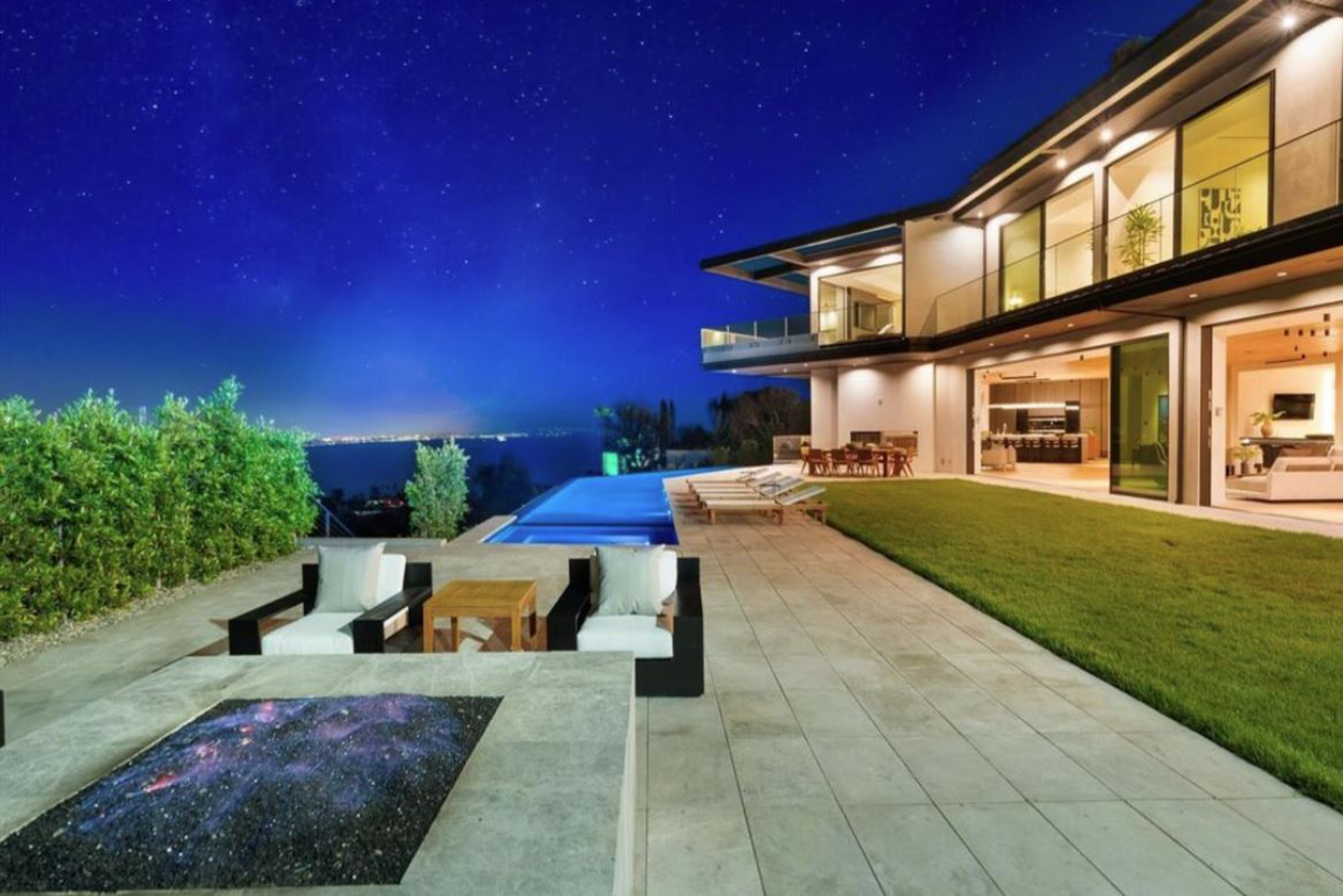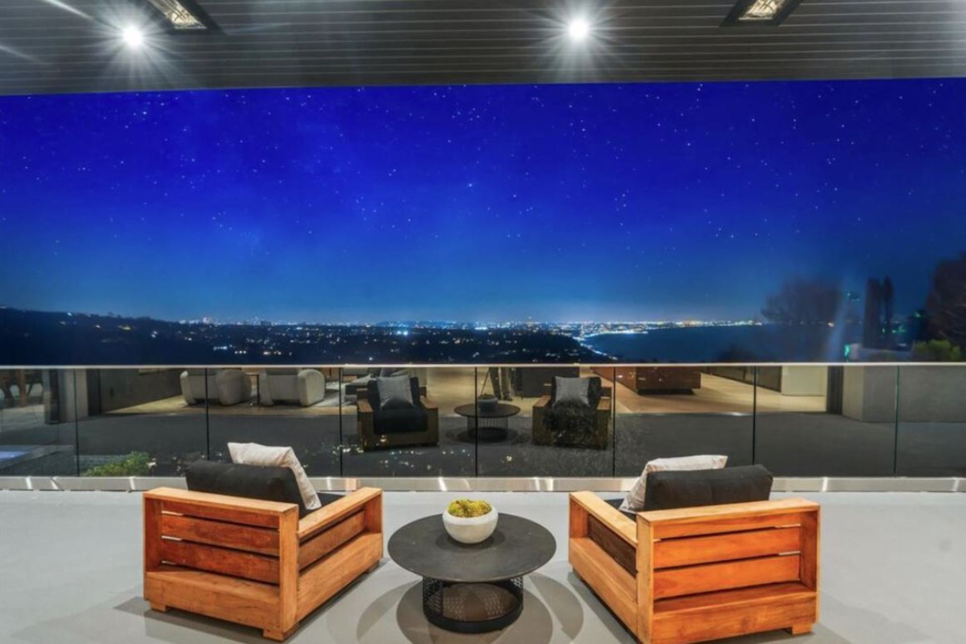 This property is only available for monthly stays with a minimum of 31 nights. If you are interested in short-term stays, please contact our concierge for your luxury travel needs. Set high above Los Leones Canyon in Pacific Palisades, a statement of architectural mastery and refined design, offering a front-row seat to some of Southern California’s most spectacular vistas. With unobstructed panoramic views stretching from the San Gabriel Mountains and Downtown Los Angeles to the vast expanse of the Pacific Ocean, this extraordinary estate embodies the pinnacle of contemporary luxury living. Spanning over 18,000 square feet of meticulously designed interior space on a 47,000-square-foot lot, the residence is a collaboration of visionary talents—architect Tom Leishman, interior designer Michael Palumbo, and builder GME Development. The result is a one-of-a-kind home that balances architectural brilliance with unparalleled sophistication. Fully furnished, the home showcases an exquisite collection of custom-designed and imported finishes sourced from Milan’s most revered ateliers, including Molteni, Poliform, Modulnova, Misuraemme, Porada, Gallotti, Bisazza, Rugiano, CEA, Lapalma, Flos, and Vismara. Even Hermès Milan contributed select finishes, including the elegantly detailed powder room mirrors. A curated art collection featuring works by Paul Gruner and Accardi further enhances the home’s elegant aesthetic. At the heart of the residence lies a stunning Poliform main kitchen, complemented by a dedicated chef’s kitchen, ideal for entertaining with effortless grace. The living and dining spaces flow seamlessly, connected by walls of glass that frame the ever-changing horizon. Every detail, from the Venetian plaster walls to the integrated lighting and climate control systems, was designed to create a home of exceptional beauty and comfort. The estate offers six all-ensuite bedrooms, including a breathtaking 2,500-square-foot primary suite featuring dual Molteni-designed closets and a serene spa-inspired bath. A dedicated wellness center provides a private retreat for rejuvenation, complete with a plunge pool, spa, sauna, and a fully equipped private gym. For entertaining, residents can enjoy a temperature-controlled wine cellar, a sophisticated bar, an expansive rooftop deck, and a grand ballroom designed for high-end private events. Outdoors, a dramatic 90-foot infinity boomerang pool with an integrated spa appears to merge with the horizon, overlooking the canyons and coastline beyond—among the most striking views in all of Los Angeles. Throughout the residence, eight distinct HVAC zones ensure personalized comfort in every space, while smart home automation offers seamless control of lighting, sound, climate, and security. The property’s resilient construction, which remained intact through regional fires, stands as a testament to both strength and design integrity. Completed in 2025, this is more than a home—it is a masterpiece of modern living, a sanctuary of elegance, and a rare opportunity to own one of the most distinctive view estates on the West Coast.